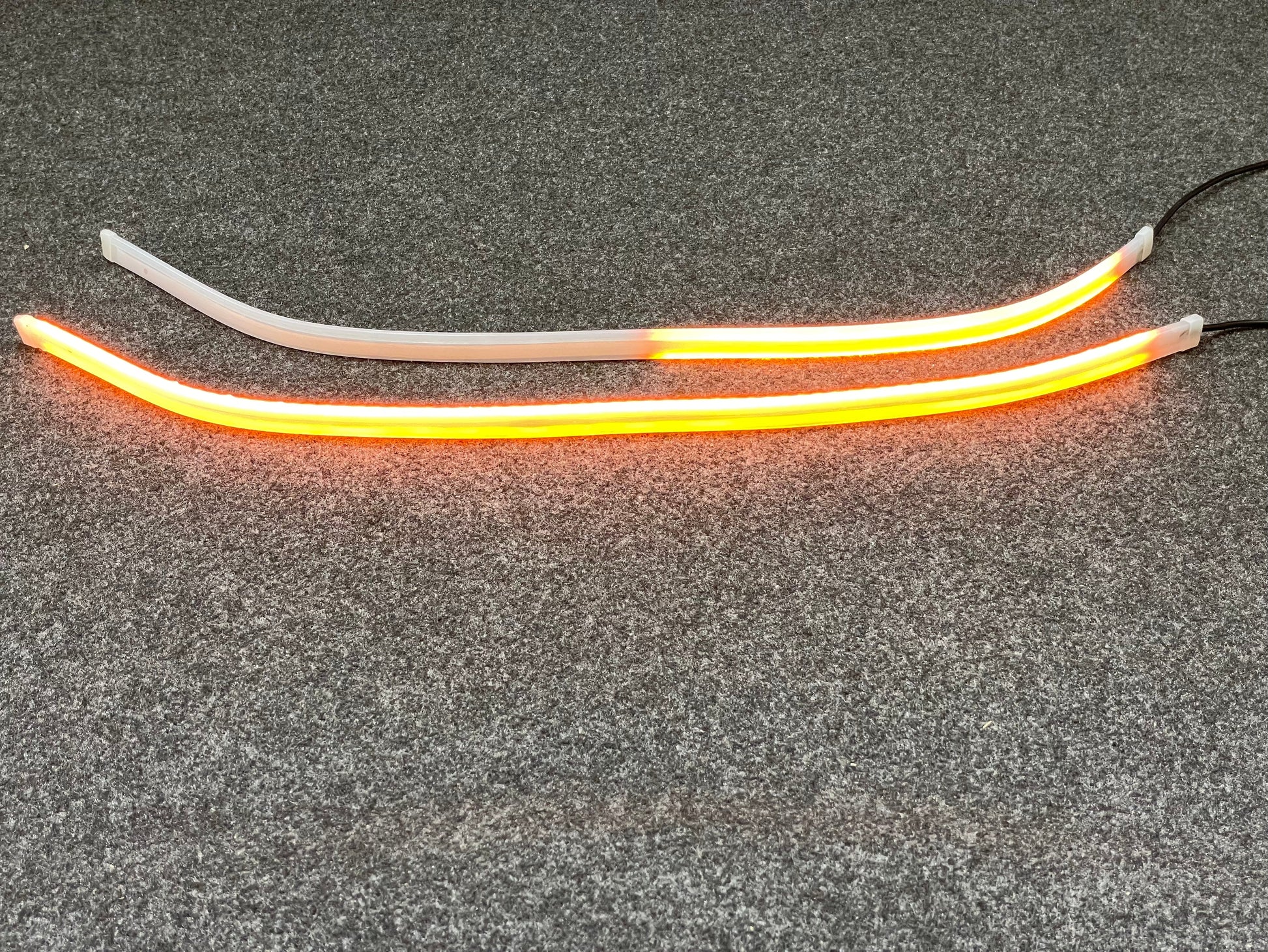 Le strip Andre.lux sottili si illuminano in modo denso e omogeneo come fossero neon morbidi e flessibili.